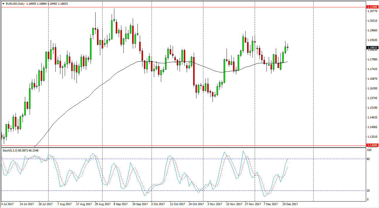 The EUR/USD pair went back and forth during the day on Thursday, as we have reached a recent high, causing the market to pull back ever so slightly. I think that given enough time, we will break out, but in the meantime, I’m looking at short-term pullbacks as potential buying opportunities. The market sees a significant amount of resistance at the 1.20 level above, and most certainly the 1.21 level as it was the recent high. I don’t have any interest in shorting this market, because when I look at the weekly charts it looks as if we are forming a bit of a bullish flag. That of course signifies that we’re going to go higher, and I believe that some time over the next year or 2 we will go to the 1.32 handle. However, a not going to do that today, so it’s likely that we will bounce around with an upward proclivity.