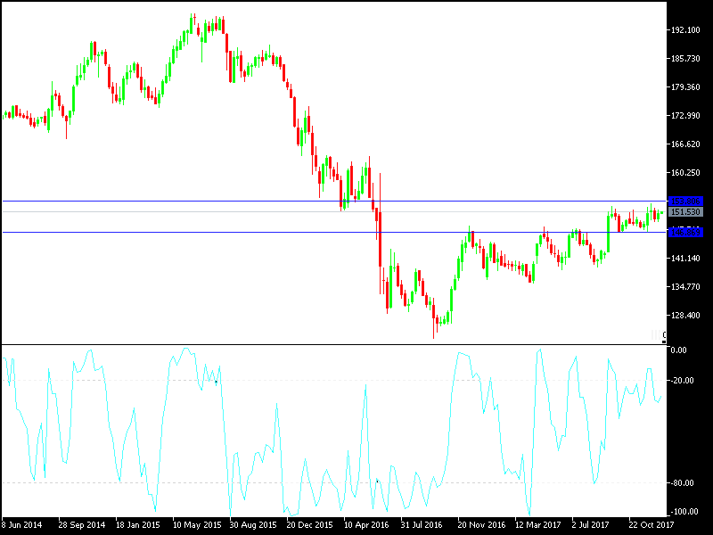 The pair’s moves during the last 4 trading sessions were between 152.00 and 151.25, showing a bullish stability still in need of more push. The GBP/JPY, is considered the worst performing among the JPY’s pairs, as after the US tax cut bill passage announcement, there was an increase move towards risker assets and increased pressure on the JPY, and the JPY’s pairs found a better chance to achieve stronger gains. However, the pair’s gains didn’t go beyond 152.00, and settled again around 151.50 at the time of writing, which is considered a strong evidence that the GBP is still facing strong pressures from the Brexit negotiations with daily updates from both parties.