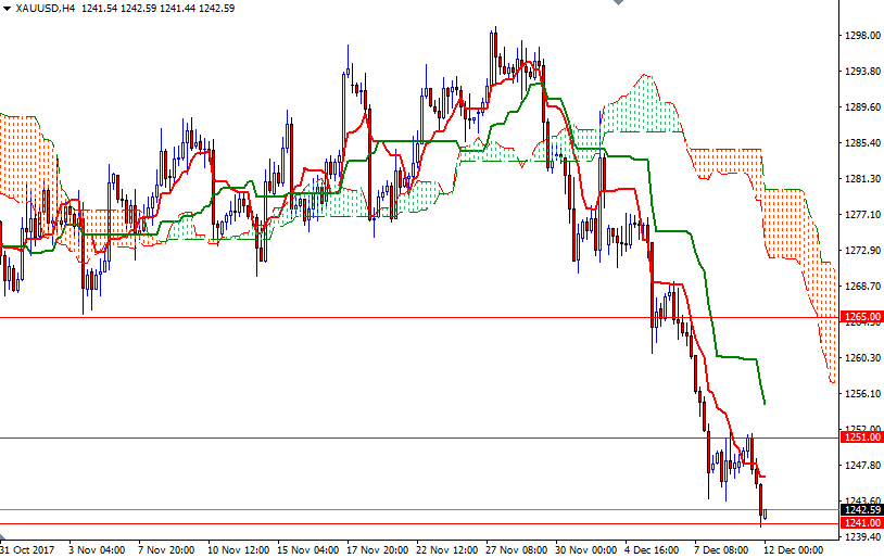 Gold started the week under pressure as investors maintained their risk for appetite. Global stocks continued going up and the U.S. dollar edged higher ahead of the Fed meeting. Financial markets pricing a roughly 92% probability of a rate hike this week. XAU/USD initially tried to move higher but surrendered earlier gains after the resistance in the 1251/49 area kicked in.