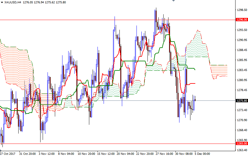 Gold prices ended Monday’s session up $2.34 an ounce as turbulence in world stock markets whetted investors’ appetite for the relative safety of the precious metal. However, gold's gains were limited by a stronger dollar. XAU/USD is currently trading at $1275.80, not far from the opening price of $1276.05.