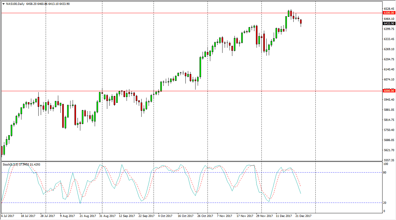 The S&P 500 barely moved during the trading session on Tuesday, which of course wasn’t overly surprising considering that the session was the first day after Christmas. Volume is going to be very thin, and at this point I think it’s very likely that we could pull back. The pullback should find plenty of support near the 2650 level though, so pay attention to these pullbacks as potential buying opportunities. The market will be very thin, and therefore the moves won’t be reliable. I think that the market rolling over makes sense, because quite frankly nobody’s going to be wanting to jump in and initiate a large position at this point. Even if we were to break down below the 2650 level, I think there is more than enough support underneath to keep this market bullish as well. The 2600 level underneath is a massive floor.