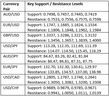 Key Support/Resistance Levels for Popular Pairs