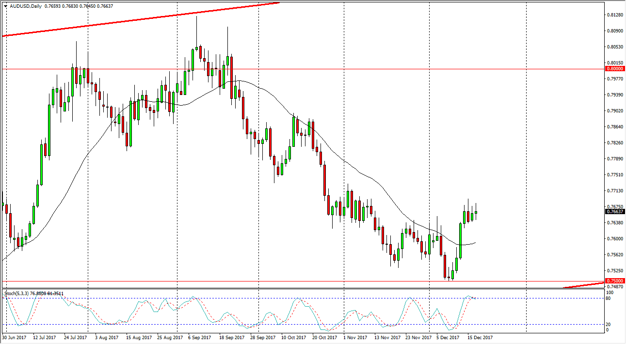 The Australian dollar rallied initially during the day, but then turned around to form a neutral candle. This neutral candle suggesting to me that we are going to roll over at this point. A breakdown below the 0.76 level should send this market down to the 0.75 handle, which is massive support. Alternately, if we break to the upside we could go as high as 0.78, but I think there are a lot of noisy areas just above the could cause problems for the Aussie dollar, so I suspect that this will be a market that we can start selling on short-term rallies that show signs of exhaustion. In general, I suspect that this market is going to be negative, but noisy more than anything else.