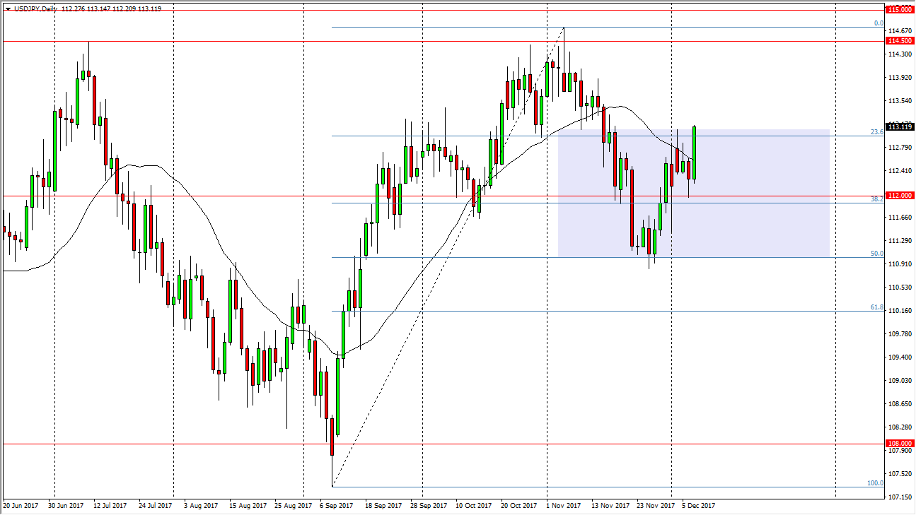 The US dollar rallied significantly against the Japanese yen during the trading session on Thursday, smashing into the 113 handle. Simply put, I believe that the market has shown what it wants to do already, and a break above the top of the range for the day probably sends this market looking for the 114.50 level above. This will more than likely be a reaction to the larger than anticipated jobs number coming out during the day, but even if we do pull back from here, I believe that the 112-level underneath is essentially going to act as a “floor” in the market short term. If we can break above the 114.50 level, then we will have a significant fight on her hands at 115. Either way, I think that this is a market that is able to be bought on pullbacks.