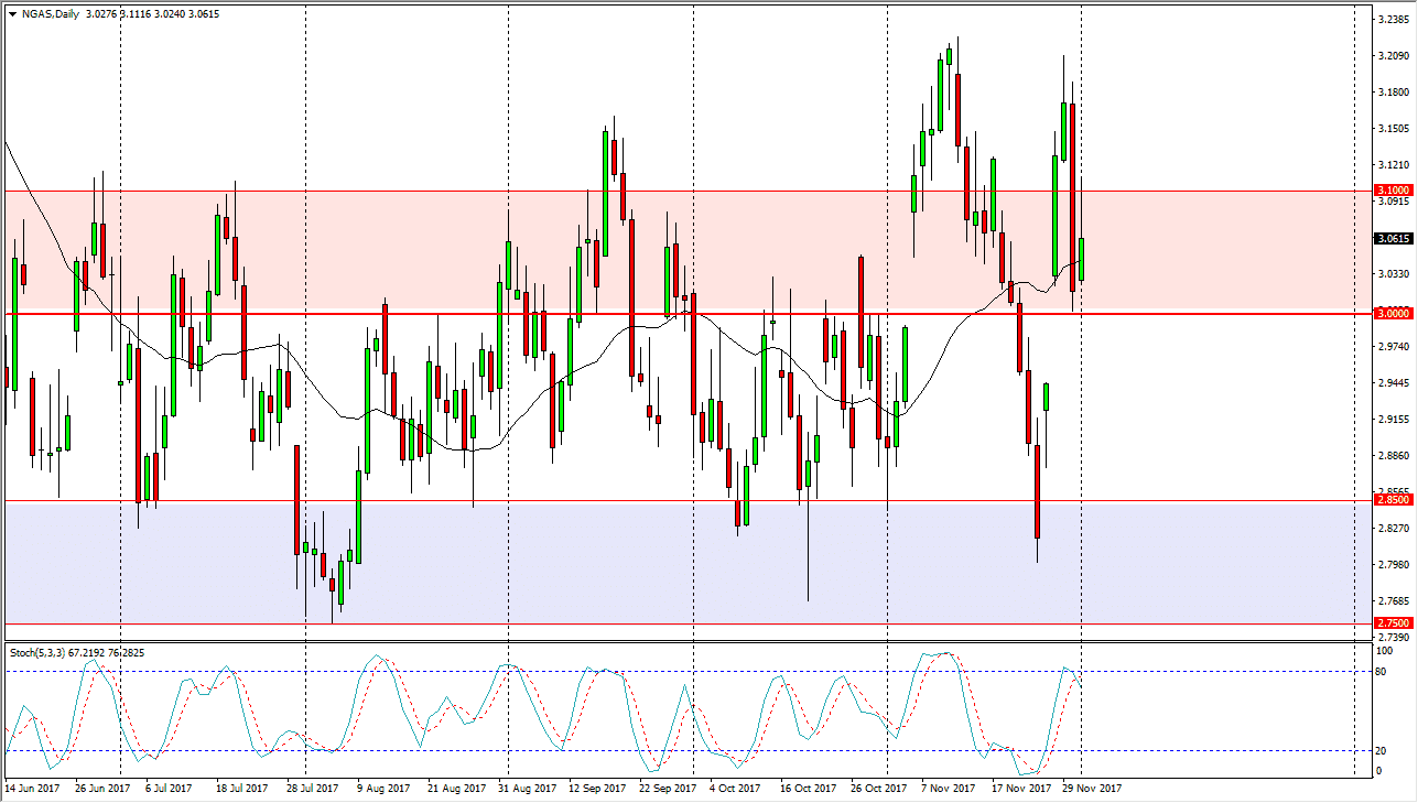 The natural gas markets rallied during the trading session, turning around to form a shooting star. The shooting star breaking down below the bottom of the candle kids in this market testing the $3.00 level, and a breakdown below there should go down to the bottom of the gap which is closer to the $2.93 level. Ultimately, I think that we will probably break down to the $2.85 level, which should be massively supportive. Alternately, if we break above the top of the shooting star during the trading session on Friday, that move above the $3.10 should send this market to the $3.20 level. The market continues to be very volatile, and quite frankly trading on next week’s weather forecast for the northeastern part of the United States. Because of this, Thomas impossible to trade with any real size at this point.