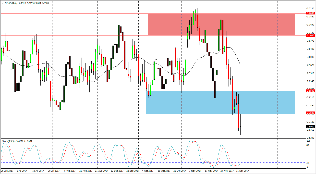 Natural gas markets have been very noisy during the trading session on Wednesday as well, reaching towards the $2.75 level, and then pulling back significantly. I believe that the market should continue to be negative, and short-term rallies will send this market lower. I think it will be difficult to hang onto a trade, but we could go as low as the $2.50 level underneath. If we can break above the $2.85 level, that would change everything and perhaps in the market towards the $3.10 level. However, if natural gas can’t rally during a cold snap in the northeastern part of the United States during the month of December, when can it accomplish a rally? I think selling continues to be the best way to play this market, but I do recognize that the snapback rally could happen.