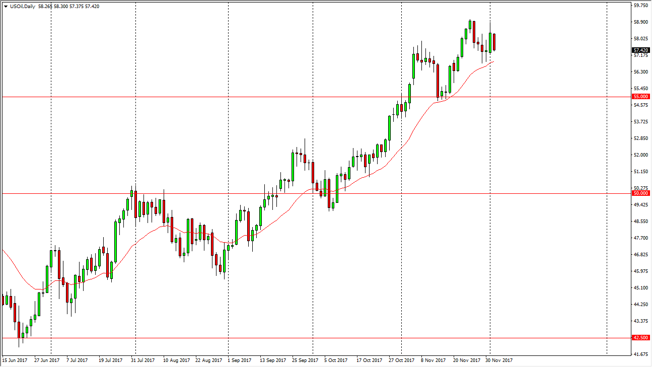The WTI Crude Oil market fell during most of the trading session on Monday, as we continue to grind back and forth. I recognize that the markets are dealing with a significant amount of headwind above, as higher prices will certainly attract a lot of American drilling and supply into the market. At the same time, OPEC looks very likely to be able to hold together the production cuts through the rest of 2018, so it’s likely that we will have a perfect dichotomy of pressure in this market, keeping it very choppy and difficult to hang onto for long time frames. A breakdown below the $55 level could send this market down to the $52.50 level, where I see the previous I could offer support again selling pressure as it enters the market. At the same time, I believe that the $60 level above would be resistance.