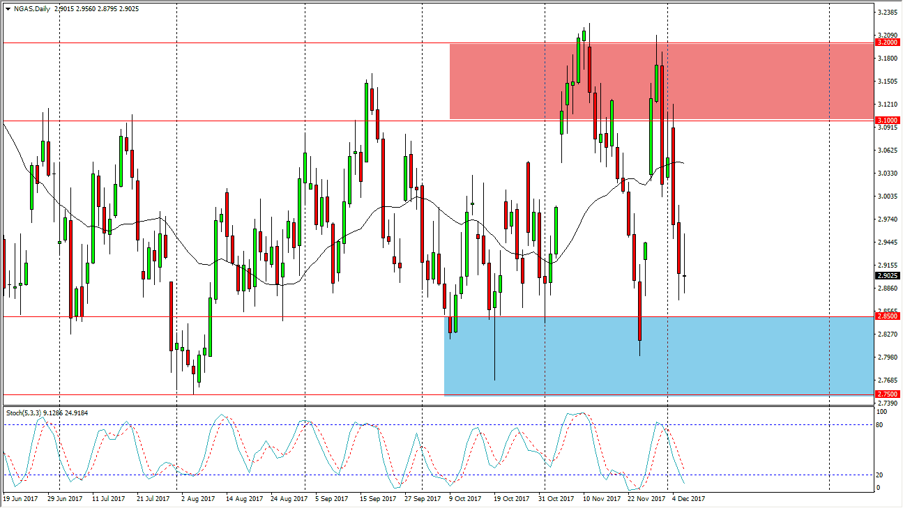 The natural gas markets had a volatile session during the day on Wednesday, but rolled over to form a bit of a shooting star for the day. While this is a very negative candle, the reality is that there is a significant amount of support just below, especially starting near the $2.85 level, so I think it is only a matter of time before we get a supportive candle or a bounce that we can take advantage of. On short-term charts, it looks as if we are trying to form some type of double bottom on the hourly chart, but I think we will probably have another attempt to the downside today. Once that fails, and I think it will, it’s time to start buying as the overall consolidation continues. Natural gas continues to be volatile, but range bound.