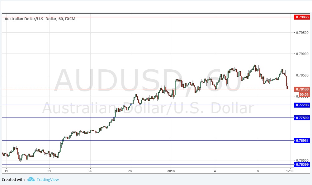 This pair rose with relatively strong momentum during December, but has begun to sell off over the past few days, and is starting to make new lows. The residual momentum suggests that there should be another upwards movement from a bounce at a lower price, making potential long trades at the support levels below look interesting. The level at 0.7750 truly stands out as likely to be strong, as it is an important psychological level as well as a pivotal point.