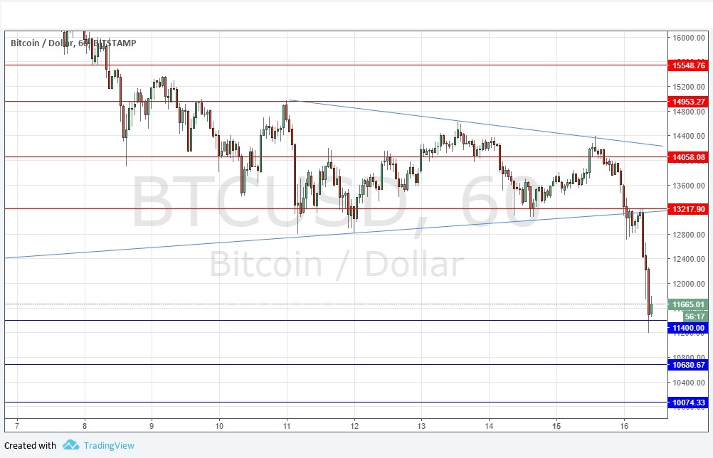 Go long after a bullish price action reversal on the H1 time frame following the next touch of $11,400, or $10,681 but be very cautious.