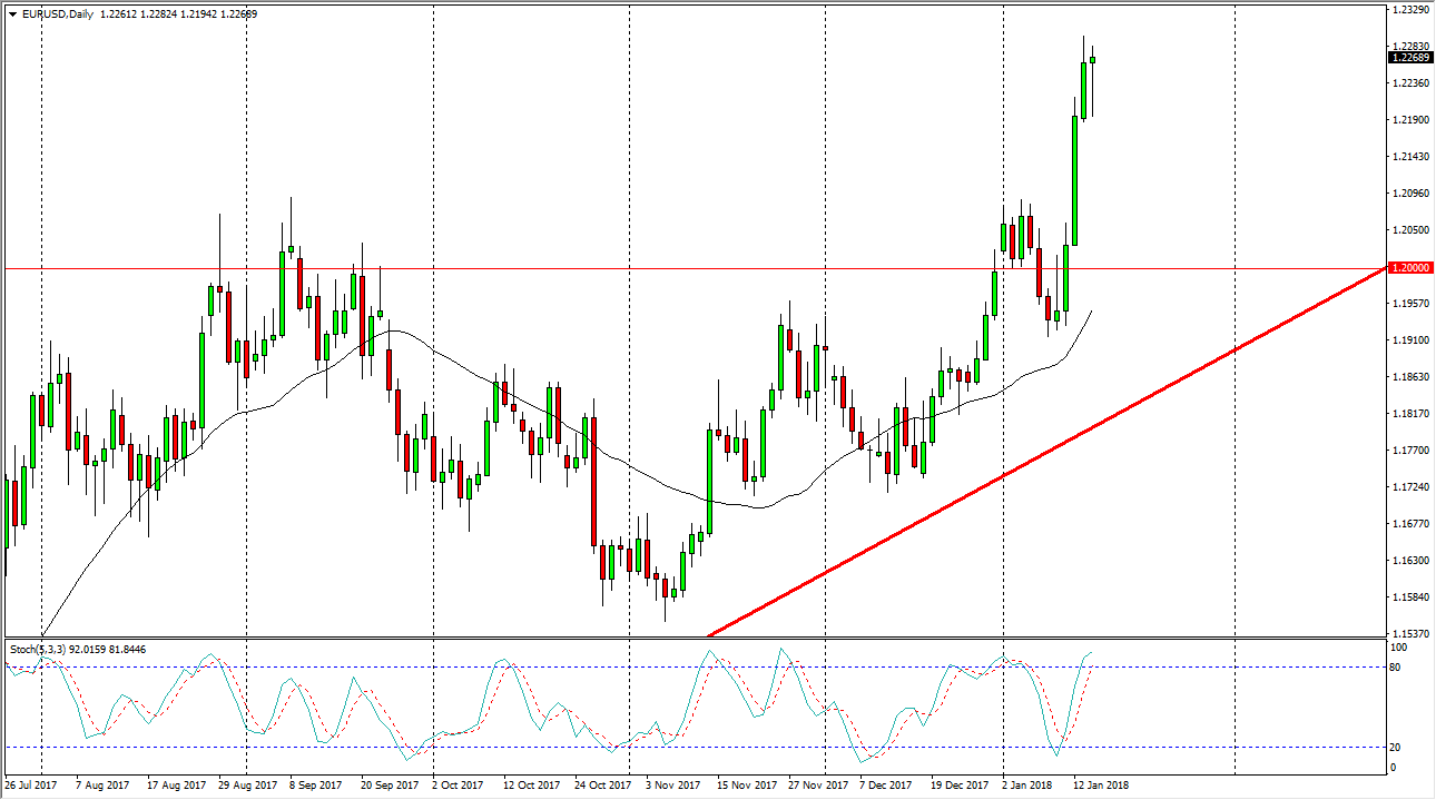 The EUR/USD pair fell initially during the trading session on Tuesday, but bounced enough to form a hammer. The hammer is sitting at the top of an extended move, so we are either going to see the market explode to the upside, or form a bit of a “hanging man.” Hanging man is formed like a hammer, but is when the market roles over interest to the bottom of the candle. If it does, that’s typically a very negative sign. Regardless, even if we break down from here I believe that the market will find plenty of buyers underneath, so any selling opportunity will be short-term at best. I think the 1.21 level underneath is going to be the beginning of significant support, so on a breakdown I would be looking to pick up value in that area. Longer-term, I anticipate that the market goes to the 1.25 handle.
