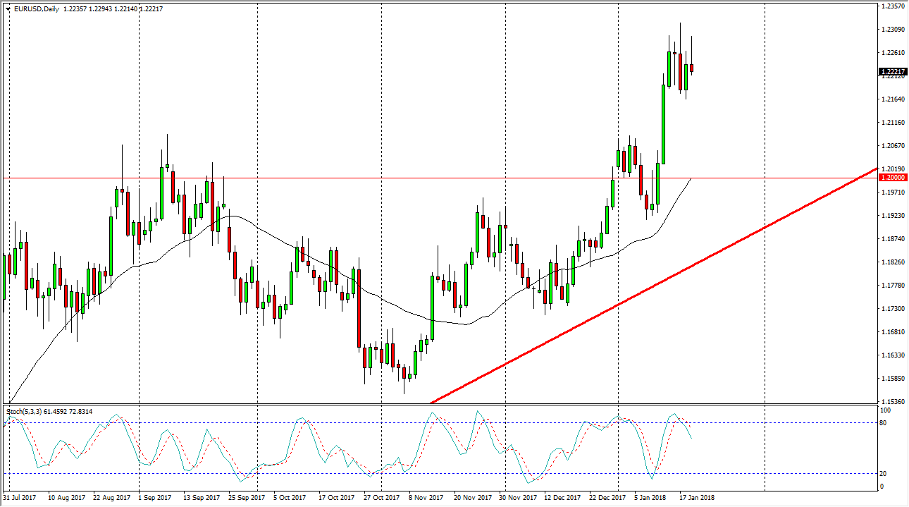 The EUR/USD pair initially rallied on Friday, but as we have seen all week, rolled over as the 1.23 level has offered far too much in the way of resistance. The daily candle is a shooting star, and I suspect that we are going to pull back at this point. However, that doesn’t necessarily mean that we are going to fall apart, it just means that we are probably going to go looking for support at lower levels. I suspect that the 1.21 level underneath will be supportive, and that the support should reach down to the 1.20 level. Any type of supportive bounce or candle on the daily chart underneath current levels to be an opportunity as it offers value. I don’t have any interest in shorting this pair, we have broken above a major resistance barriers recently, which of course is a very bullish sign.