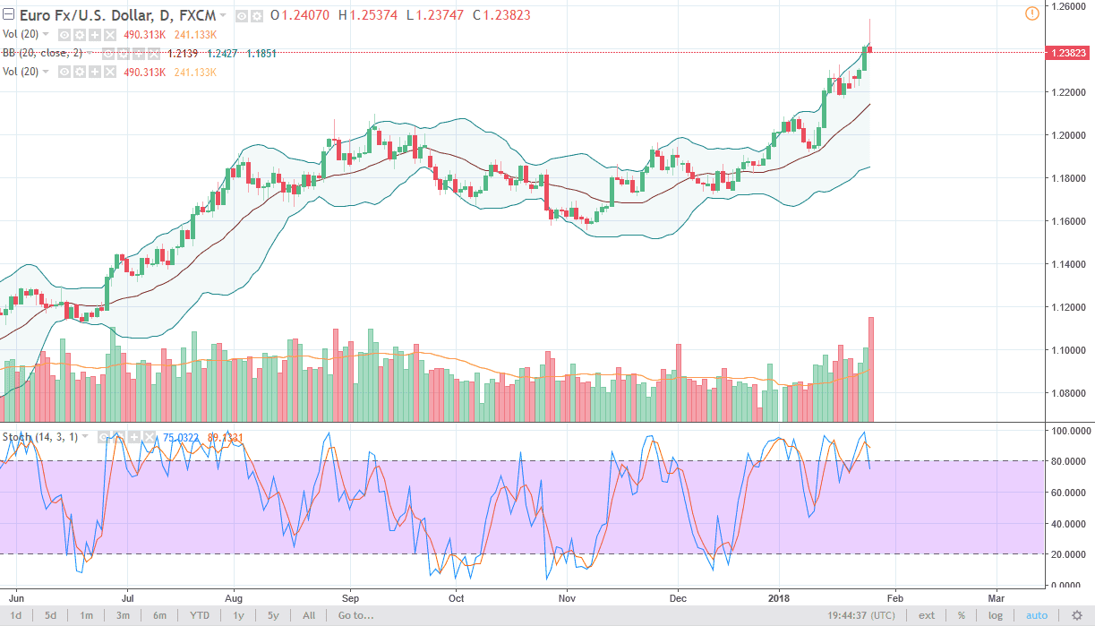 The Euro rallied significantly during the trading session on Thursday, touching the 1.25 level. We did find selling pressure there though and have formed a reversal bar. This is not a selling opportunity though, is simply a pullback that is necessary. I suspect that a lot of the movement is based upon profit-taking, and not much more than that. I think if we can break above the top of the candle, that’s obviously a bullish sign but I prefer to wait for a pullback to the 1.22 region to take advantage of value, assuming we fall that far. I suspect there is a significant “floor” in the markets or near the 1.20 level underneath there, so it’s not until we break down below that level that I would be comfortable shorting this pair. There’s noise in the market, but quite frankly we needed to see this.