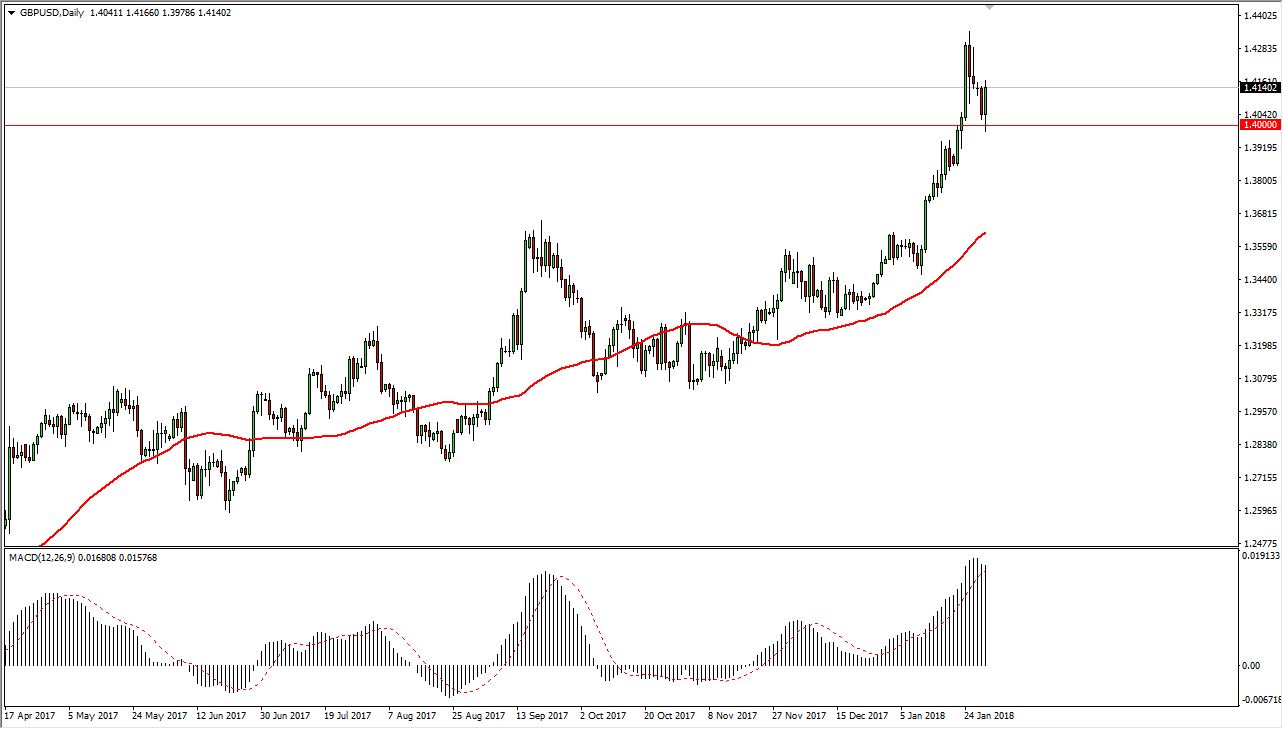 The British pound initially fell during the trading session on Tuesday, testing the 1.40 level for support. That’s an area that should offer plenty of buying pressure based upon the large, round, psychological importance of the number, and I believe that the market will probably continue to respect that level. The British pound is very bullish right now, and we have obviously seen a lot of buying as of late. The 1.43 level above is significant in its importance, and if we can break above there I think that the market could go to the 1.45 level next. The market should go much higher over the longer term, especially near the 1.50 level. The 1.38 level underneath should be supportive, but at this point I think it’s only a matter of time before the buyers jump in, not only based upon the fact that the British pound has been oversold for quite some time, but the US dollar is in a significant amount of trouble.