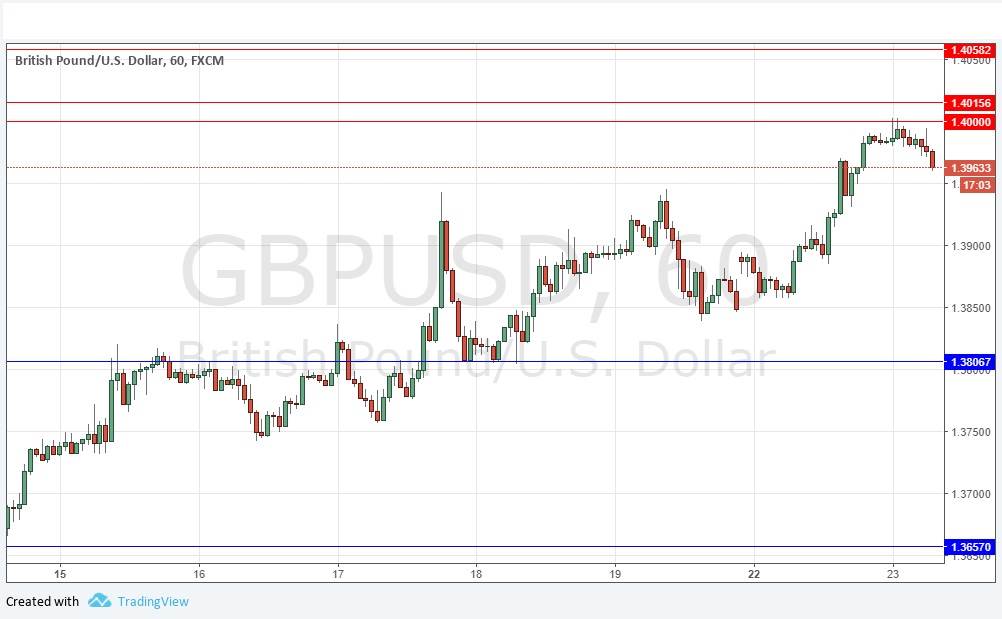 Short entry following a bearish price action reversal on the H1 time frame immediately upon the next touch of 1.4000 or 1.4058.
