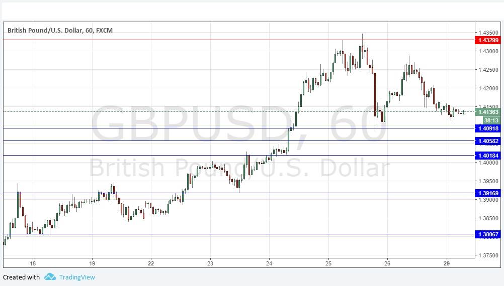 There is no reason not to remain bullish, despite the fairly strong sell-off and classic topping formation below 1.4330, as long as any of the support levels between 1.4100 and 1.4000 hold. There is a strong long-term bullish trend with powerful momentum and it is unlikely to be over yet. However, if the price gets established below the psychologically important round number at 1.4000, that would be a very bearish sign indicating that we might not see 1.4330 again for a long time.