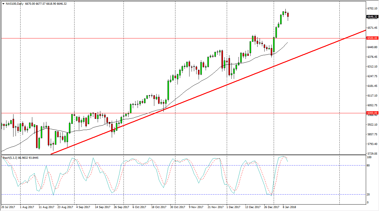 The NASDAQ 100 fell significantly during the trading session on Wednesday, but turned around to form a hammer. By forming a hammer, we ended up showing signs of bullish pressure, and I think this shows that dips continue to offer value. I believe that the market should continue to be noisy and choppy, but positive over the longer term. I believe that the “floor” in the NASDAQ 100 is the 6500 level, so I don’t have any interest in trying to sell until we break down below that level at the very least. Longer-term, I fully anticipate seeing this market going to the 6700 level, and then much higher than that. The NASDAQ 100 is a bit overbought though, so I would love to see a pullback as it offers value in a market that I think will continue to attract a lot of attention.