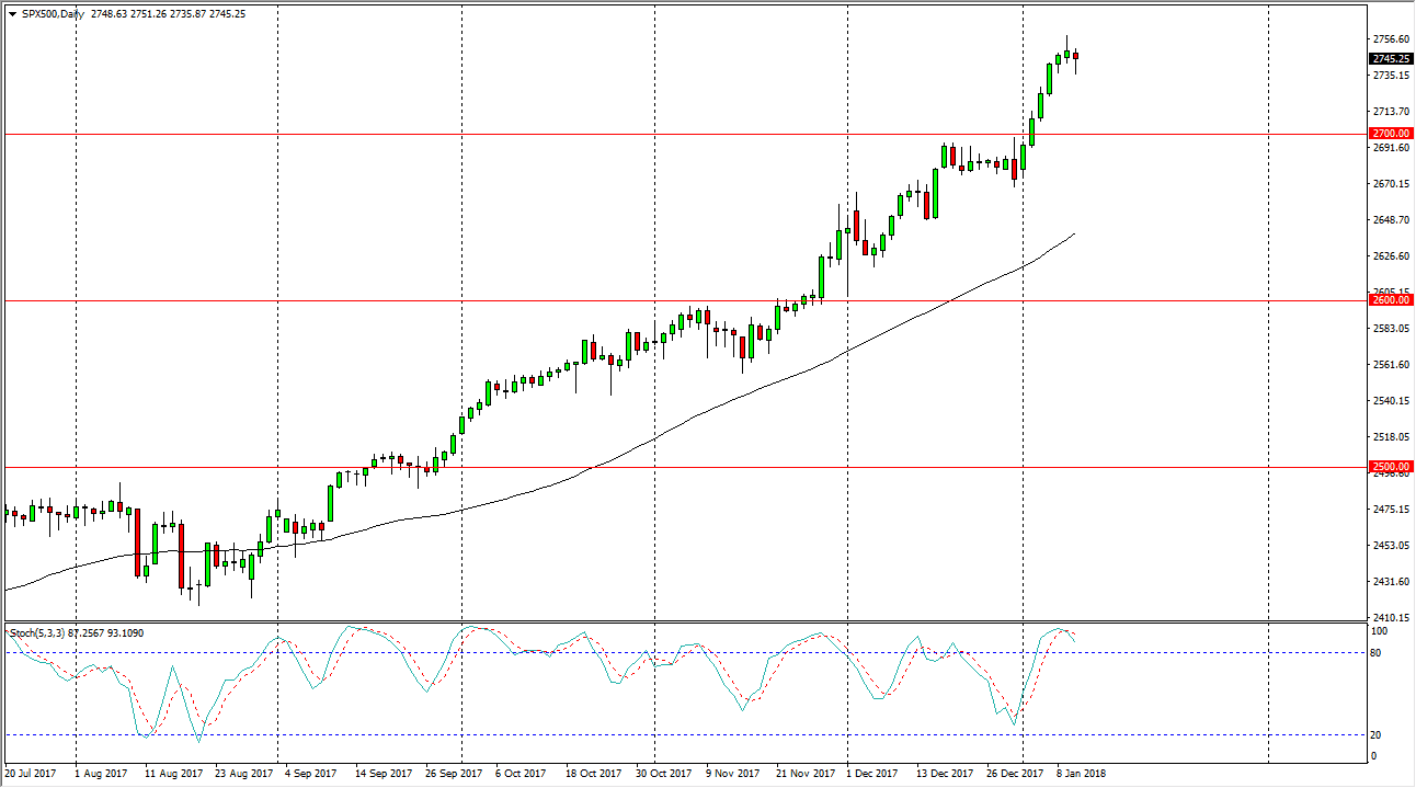 The S&P 500 has fallen during most of the trading session on Wednesday, but we did get back some of the losses towards the end of the day, and I am more impressed by that than anything else, mainly because it is the Americans that picked the market back up. The resulting hammer is a bullish sign, but if we were to break down below that hammer, then I think we could drift a bit lower, which I believe would be a very bullish sign longer-term, as the market has gotten a little bit ahead of itself. I think that the 2700 level underneath should continue to be the “floor” as far as I can see, and with this being the case I am a “buy on the dips” trader as algorithmic traders continue to pick up the S&P 500 on pullbacks based upon value.