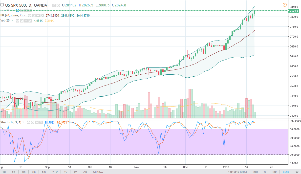 The S&P 500 rallied again during the day on Monday, after initially dipping towards the 2800 level. We are ready to continue going higher from what I see, and I think at this point it’s obvious that dips are to be bought, not sold. Longer-term, I believe that the market is probably going to go looking towards the 3000 handle above, which is a major psychological level. I think that the market will continue to benefit from not only the Senate looking to vote to put the government back to work, but the tax reform bill that has recently passed. The US economy continues to strengthen, and that of course helps the S&P 500 as well. Beyond that, the US dollar has drifted a bit lower, and it suggests that we are more than willing to buy the US stock market overall.