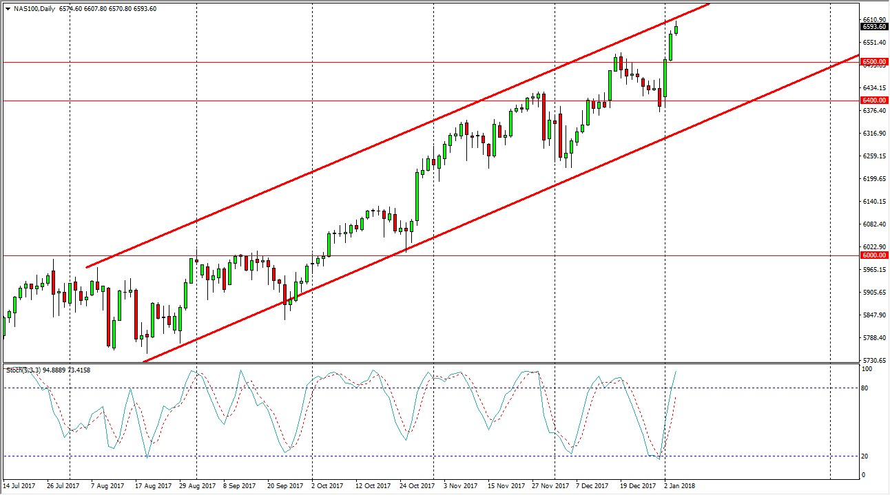 The NASDAQ 100 tried to rally during the trading session on Thursday, but turned around to form a less than impressive candle. Ultimately, it doesn’t matter though, because we are at the top of an up-trending channel, so it makes sense that we may have to pull back a little bit to pick up gains. I think that the 6500-level underneath will offer massive support, and although this is a market that is bullish, it has been a bit of a laggard when it comes to the US markets. Ultimately though, if we can break above the top of the channel, that should put an impulsive bend to this market. I have no interest in shorting, least not until we break down below the 6400 level, something that seems very unlikely to happen anytime soon. Nonetheless, I do prefer the S&P 500 over the NASDAQ 100.