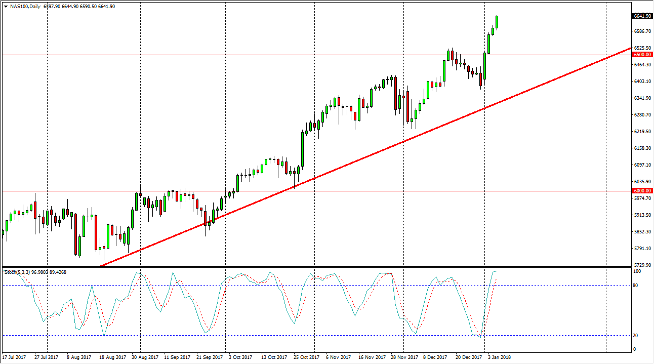 Not to be outdone, the NASDAQ 100 also rally during what should have been a negative day. We have recently cleared the significant 6500 level, and that of course suggests that we are going to continue to go to the upside. The uptrend line underneath should continue to keep the market bullish as well, and I think the given enough time we will get pullbacks we can take advantage of. The NASDAQ 100 has been a bit of a laggard compared to the other US indices, but it has been bullish as well. Perhaps we should play catch-up now, but either way I don’t think there is a significant argument to short this market. I think in general, it’s probably best to look for dips as value instantly add to a position there. I believe that we are going to go looking towards the 6750 level.