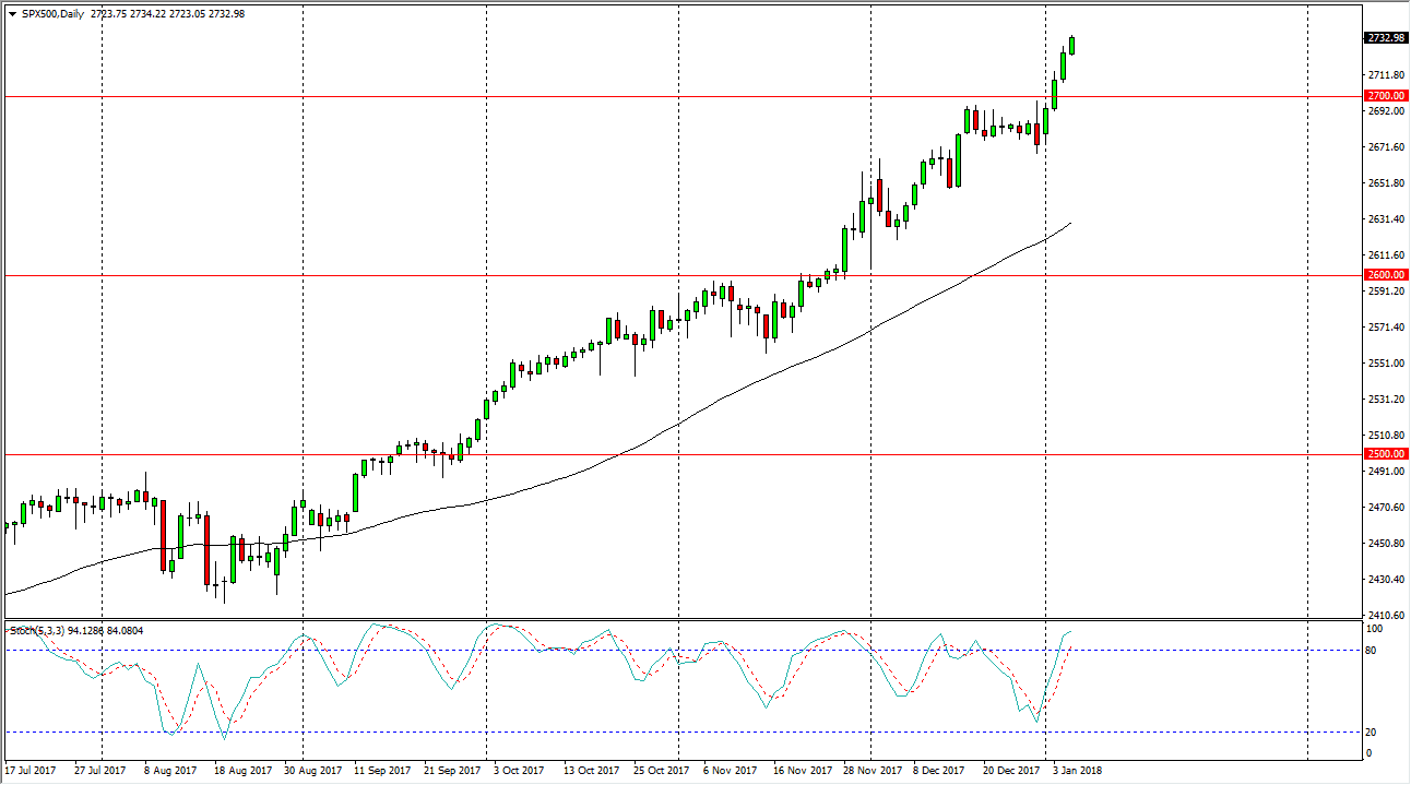 The S&P 500 rallied slightly during the session on Friday, which is a bit impressive considering that the jobs number missed significantly. Having said that, it looks as if the buyers are willing to jump in, and I think now that the 2700 level should be a short-term floor in the market and that we will continue to see people be attracted to the S&P 500 overall. Money managers are coming back from the holidays, so there’s plenty of fresh money on Wall Street to push things to the upside. I like buying dips, and I believe we are going to go looking towards the 2750 level next. Expect a lot of volatility, but quite frankly I don’t see the reason to short this market, as we have been so reliably bullish for weeks.