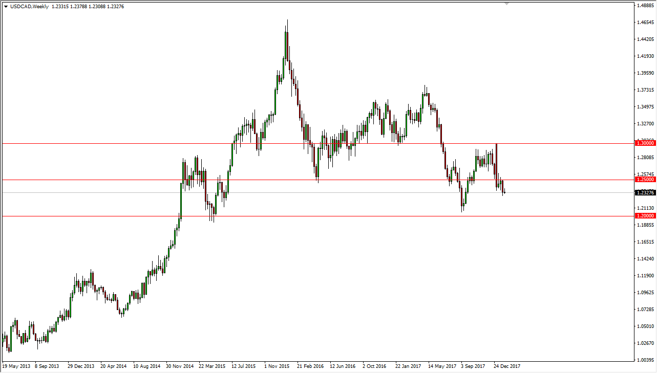 The US dollar has been very negative against the Canadian dollar during most of the month of January, as oil markets have shown a significant amount of strength. This of course is a negative influence on this pair, and further compounding this move is the relative weakness of the greenback against most other currencies. Ultimately, breaking below the 1.25 level was a significant signal that we are going to go lower, and when I look at the charts I recognize that we are probably going to be looking towards the 1.20 level underneath, which has been massively supportive in the past. I think that the downward momentum should continue, and I believe that the 1.25 level should offer a significant amount of resistance.