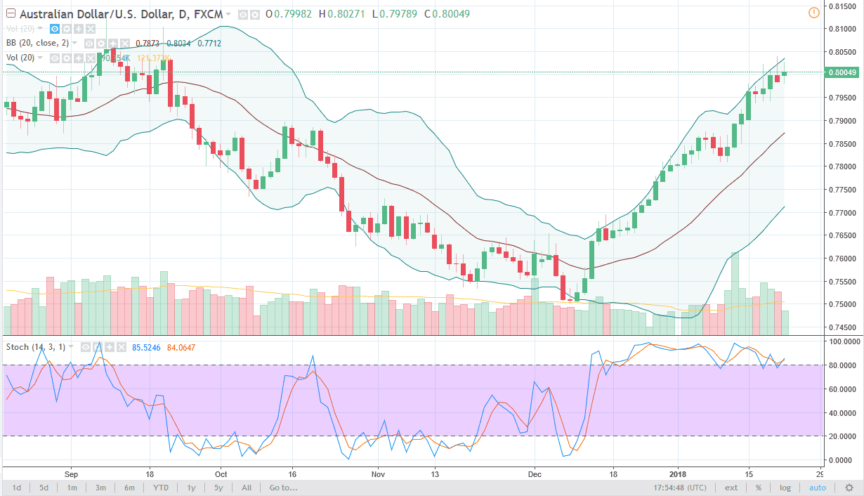 The Australian dollar tried to rally during the day but gave back most of the gains in order to form a bit of a shooting star. Again, it looks as if the 0.80 level is going to offer a major amount of resistance, and that is the major fulcrum for price that we have in this market going back decades. I think it’s going to take something special to break out to the upside, but once we clear the 0.81 handle, I’m willing to “buy-and-hold.”