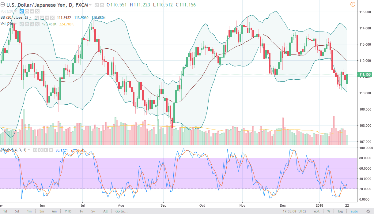 The US dollar rallied a bit against the Japanese yen after initially falling on Monday, as we have broken above the 111 level. Part of this is due to the Senate looking likely to vote to open the government again, and that of course helps the US economy, albeit minimally. We are just above a major support level in the form of a large, round, psychologically significant handle at 110, so a bounce was always going to be a possibility. I think that the market will eventually reach towards the 112 handle, but we may have to go back and forth in the meantime, as volatility is the norm for this pair. A breakdown below the 110 level should send this market down towards the lows again, closer to the 107.50 level.
