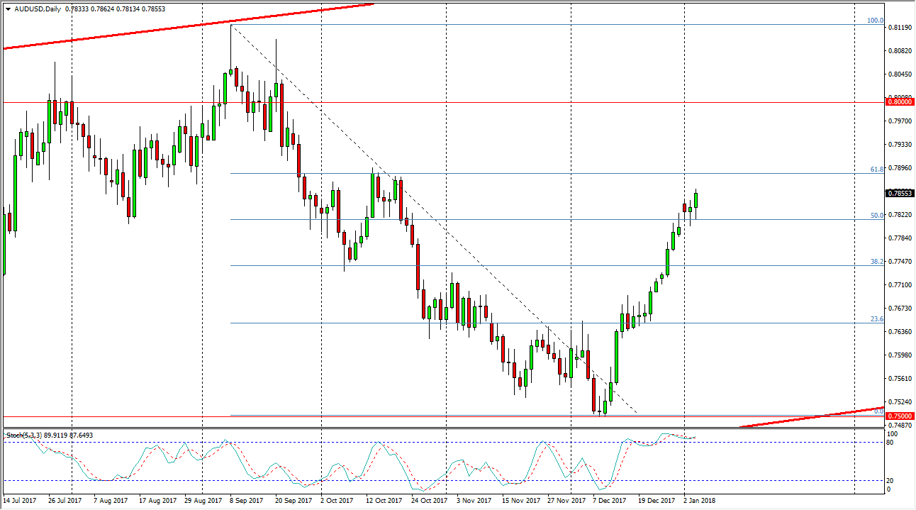 The Australian dollar initially fell during the trading session on Thursday, but as we had seen during the Wednesday session, there seems to be plenty of support near the 0.78 handle. The fact that we had formed the supportive looking candle suggests to me that we are going to continue to go higher, and that short-term pullback should be buying opportunities. This will be especially true if the gold markets continue to find buyers, which certainly look as if they are ready to do. The 0.80 level above is massive in its importance, and a break above there becomes more of a “buy-and-hold” scenario. Both of these markets are very similar right now, and I think they will move in synchronicity once we get to break out. If we do pull back from here, I expect to see a lot of support near the 0.7750 region.