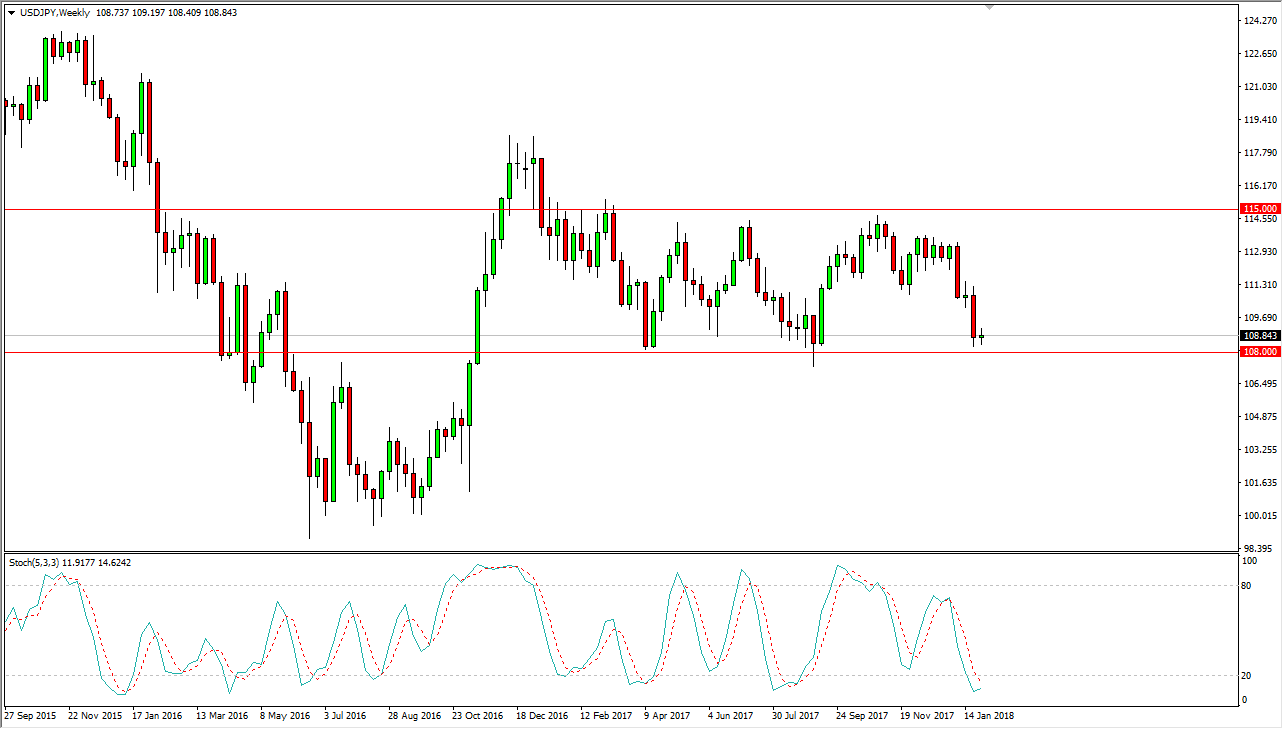 The US dollar has gone back and forth during the week, testing the 108 handle for support, an area that has clearly been an area of interest for the buyers over the last year, and it looks likely that if we break above the top of the weekly candle, I think we will continue to go much higher, perhaps reaching towards the 115 level longer term. I think there are several areas along the way that could be interesting for profit-taking and could cause bits of noise.