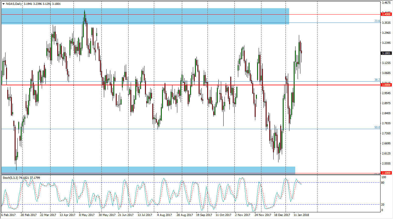 Natural gas markets went back and forth during the trading session on Friday, ultimately in the forming a neutral candle. I believe that the neutral candle signifies that we are running out of steam, and the stochastic oscillator has not only reach the overbought condition, but it has already crossed over. That tells me that the market is more than likely ready to roll over, and it makes sense structurally as there has been a massive amount of resistance and noise just above. I believe that the resistance extends to the $3.40 level, and we are starting to see temperatures rise in the United States next week, which will bring down some of the demand, but more importantly: allowed drillers to start extracting natural gas from the ground again. Ultimately, most of the bullish case for natural gas is a short-term phenomenon, so I think it’s only a matter of time before we roll over.