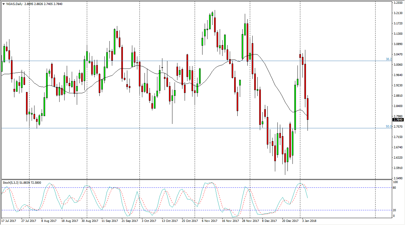 Natural gas markets fell significantly during the trading session on Friday, reaching towards the $2.75 handle. Because of this, the market did find buyers as it is an area where you would expect a lot of noise, based upon previous price action. However, if we break down below the lows of the session, the market probably goes down to the $2.60 level. I think at this point we will probably see rallies from this area, but those rallies should show signs of exhaustion that we can take advantage of and start shorting again as natural gas markets have not been able to hang on the gains in what is traditionally the most bullish time of the year. That of course is a very negative sign, and I think it shows just how dire the situation is.