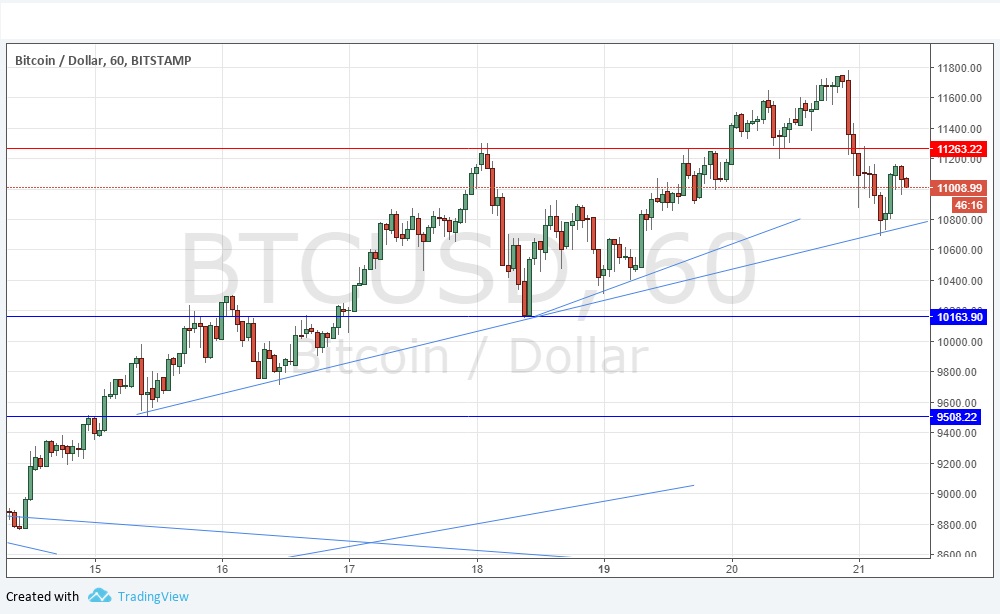Yesterday’s signals were not triggered as there was insufficiently bullish price action at $10,894 or bearish price action at $11,532.