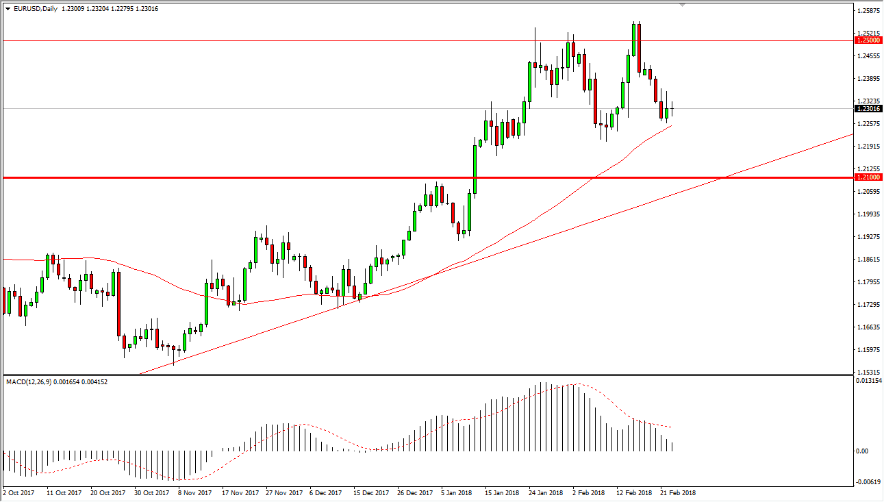 The EUR/USD pair has done almost nothing during the trading session on Friday, as we hang about the 1.23 level. This is an area that has been important for the last couple of weeks, if not months, but longer-term I believe that the 1.21 level underneath is the beginning of the “floor” in the market. I would also point out that the 50-day EMA is just below, and it looks as if it is trying to offer a bit of dynamic support. I think that even if we do break down for here, it’s not until we break down below the uptrend line below that I would be concerned about the uptrend. I would look at those pullbacks as value, just as a break above the Thursday shooting star would be a bullish sign and suggest that the market is reaching towards the 1.25 handle.