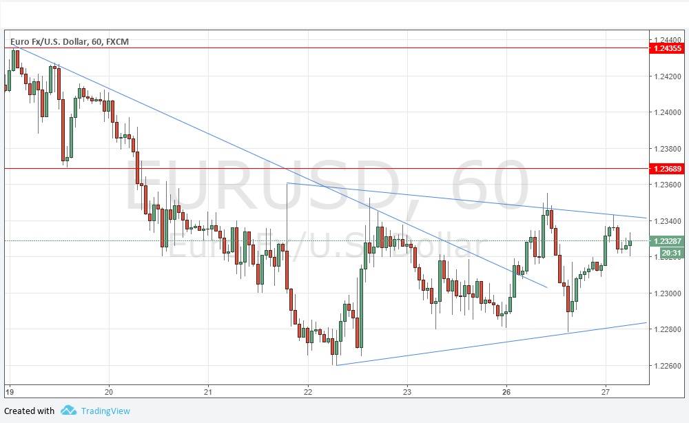 I noted yesterday that although the price had broken the dominant medium-term bearish trend line, it still did not look truly ready to rise. This was correct, but I see the situation as more hopeful for bulls today, as the price has risen over recent hours, and seems to be consolidating just below a third tap against the upper trend line of a short-term consolidating triangle, which suggests that a bullish breakout is most likely to happen when Europe opens for business. Of course, such an advance might be halted by the resistance level nearby at 1.2369, but bulls can be encouraged by the long-term bullish trend in this pair.