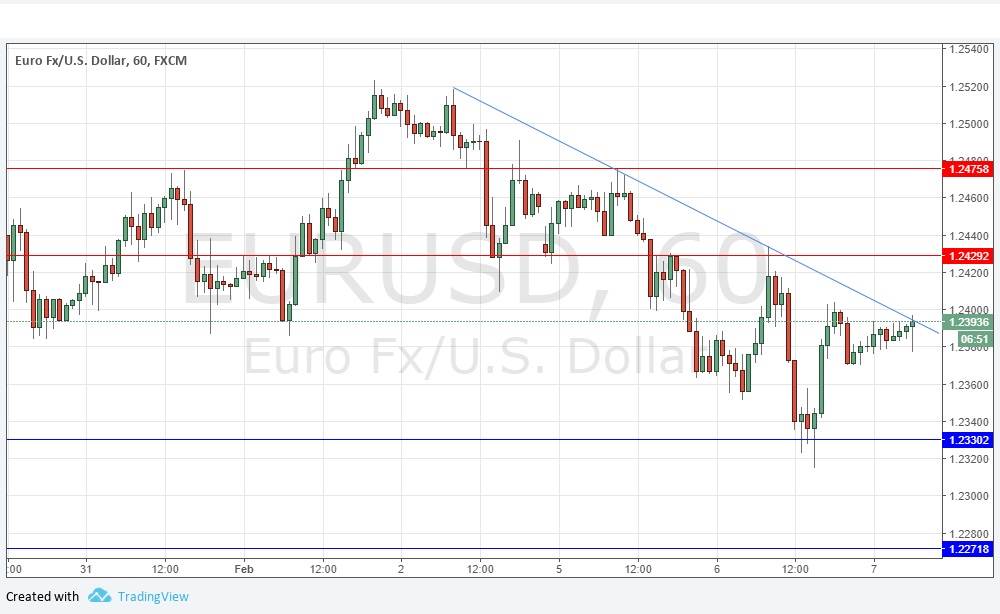 A break up above the bearish trend line, and even more importantly above 1.2429, would be bullish signs that the long-term bullish trend is getting back on track. There is likely to be a reaction when the price reaches 1.2429 so it should be an interesting level for scalpers to watch. Despite this, market movements are very difficult to predict right now as much will be driven by U.S. Dollar flow which is being affected by turmoil in stocks.