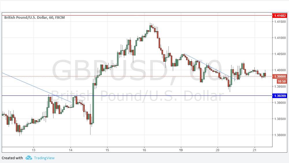 Yesterday I had a bearish bias, seeing the price as likely to reach the support level 1.3921. This turned out to be incorrect, with the Pound trading upwards, although it was not very convincing. Nevertheless, the Pound is showing some relative strength against an otherwise strong U.S. Dollar, so if the Dollar sells off later it seems likely that the Pound would benefit most. As there is plenty of data due today for both sides of this pair, it is impossible to make a directional forecast, but if there is a move against the Dollar a long trade could play out well.