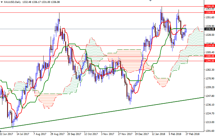 The market is currently in the process of testing the initial resistance at 1336, which also happens to be the daily Kijun-Sen (twenty six-period moving average, green line). Prices are moving within the borders of the 4-hourly Ichimoku cloud for the time being and in addition to that, the Tenkan-Sen (nine-period moving average, red line) and the Kijun-Sen are flat on both charts, indicating sideways trading in the near term.
