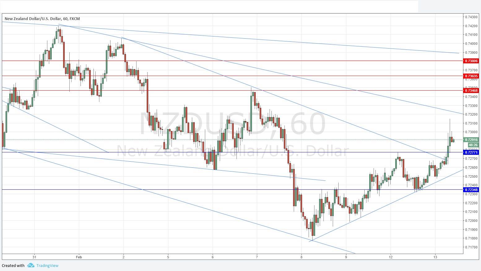 Yesterday’s signals were not triggered, as there was no bearish price action at 0.7277, and the price never quite reached the support level at 0.7230.