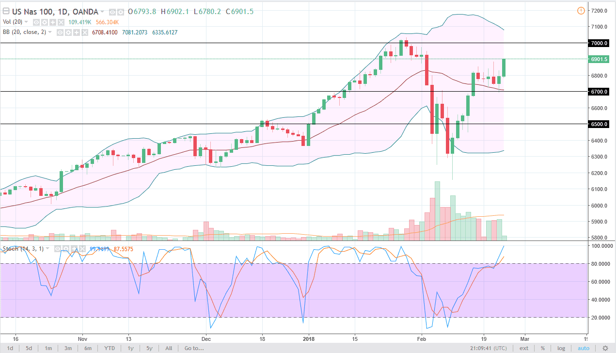 The NASDAQ 100 also rally during the day, gaining over 1.6%, as we have broken above the 6900 level. It looks as if we are going to go to the 7000 handle above which has been resistance in the past. While I don’t know if we can break above there and one attempt, certainly we will given enough time. If we can break above the 7000 level, then the market goes to the 7200 level, as it is the measured move from a recent consolidate of break out. I think that short-term pullbacks give us opportunities to pick up value, and the 6700 level very well could become the next “floor” in the market. If the US dollar roles over, that should continue to help US stock markets as well, and that could give us yet another reason to start buying the NASDAQ. It makes technology cheap, which is one of the bigger drivers of this market.