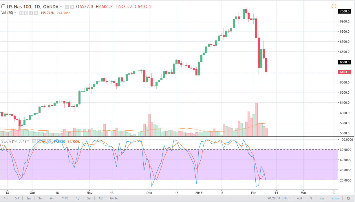 The NASDAQ 100 fell during the trading session as well, slicing through the 6400 level at the end of the day. I believe that the market is going to continue to go lower, perhaps down to the 6300 level, and then possibly even break down below to the 6200 level. If we were to continue the move lower, I would be very concerned if we break down below 6000, as it would be a sign that the overall uptrend is breaking down. If we can bounce above the 6500 level, the market could reach towards the 6700 level above, and once we clear that area, we could go to the 7000 handle. This is a market that’s been in an uptrend for some time, but certainly looks as if it is struggling to find buyers at this point. It’s likely that we could sit on the sideline to protect trading capital in the meantime, as it looks like the sellers are quite done.