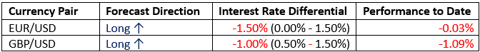 For the month of February, we forecasted that the best trades would be long EUR/USD and GBP/USD. The performance to date is as follows: