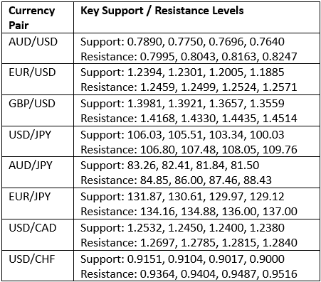 We teach that trades should be entered and exited at or very close to key support and resistance levels. There are certain key support and resistance levels that should be watched on the more popular currency pairs this week, which might result in either reversals or breakouts: