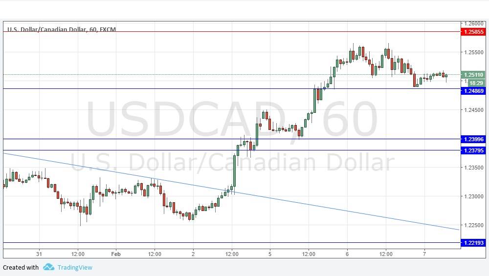 Yesterday the price found some support at the supportive zone I identified as starting at 1.2508, but the bounce was short-lived, and the lower edge of the zone is now threatened. However, it may hold. The U.S. Dollar remains quite strong generally, so I have a slight bullish bias on this pair today, although I still expect the resistance level at 1.2586 to be strong if it is reached.