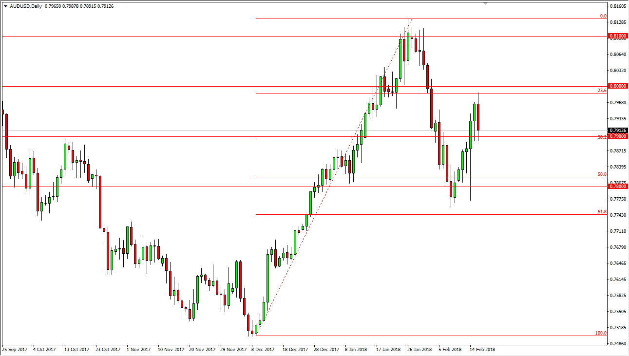 The Australian dollar has had a wild ride during the trading session, initially rallying, but then falling back towards the 0.79 level in late trading. That’s an area that should be supportive based upon previous action, so it is probably only a matter of time before the buyers get involved, especially if gold starts to rally. The US dollar has been struggling in general, so I think that it’s only a matter of time before the market turns around and continues to rally. The 0.80 level is a massive resistance barrier, and I think it extends to the 0.81 level. The market breaking above there would be a “buy-and-hold” situation. Ultimately, if we do break down below the 0.79 level, I think there’s plenty of support closer to the 0.78 level as well, so I think it is easier to buy this market in selling, but the question now is simply a matter of waiting for a bit of a bounce to get involved.