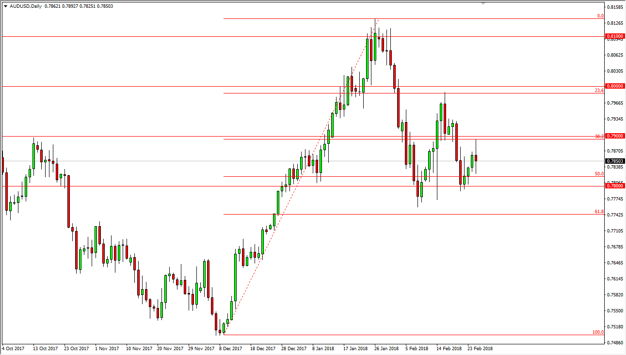 The Australian dollar has been very noisy on Monday, reaching as high as the 0.79, and as low as 0.7825 as well. I think that the market will continue to be very noisy, but I believe that the buyers are starting to come in and start picking up value when it appears. If we can break above the 0.79 level, the market should reach towards the 0.80 level which is a significant level on longer-term charts. A break above that level has the market targeting the 0.81 handle, which is the gateway to much higher levels, as we should have more of a “buy-and-hold” attitude to the markets.