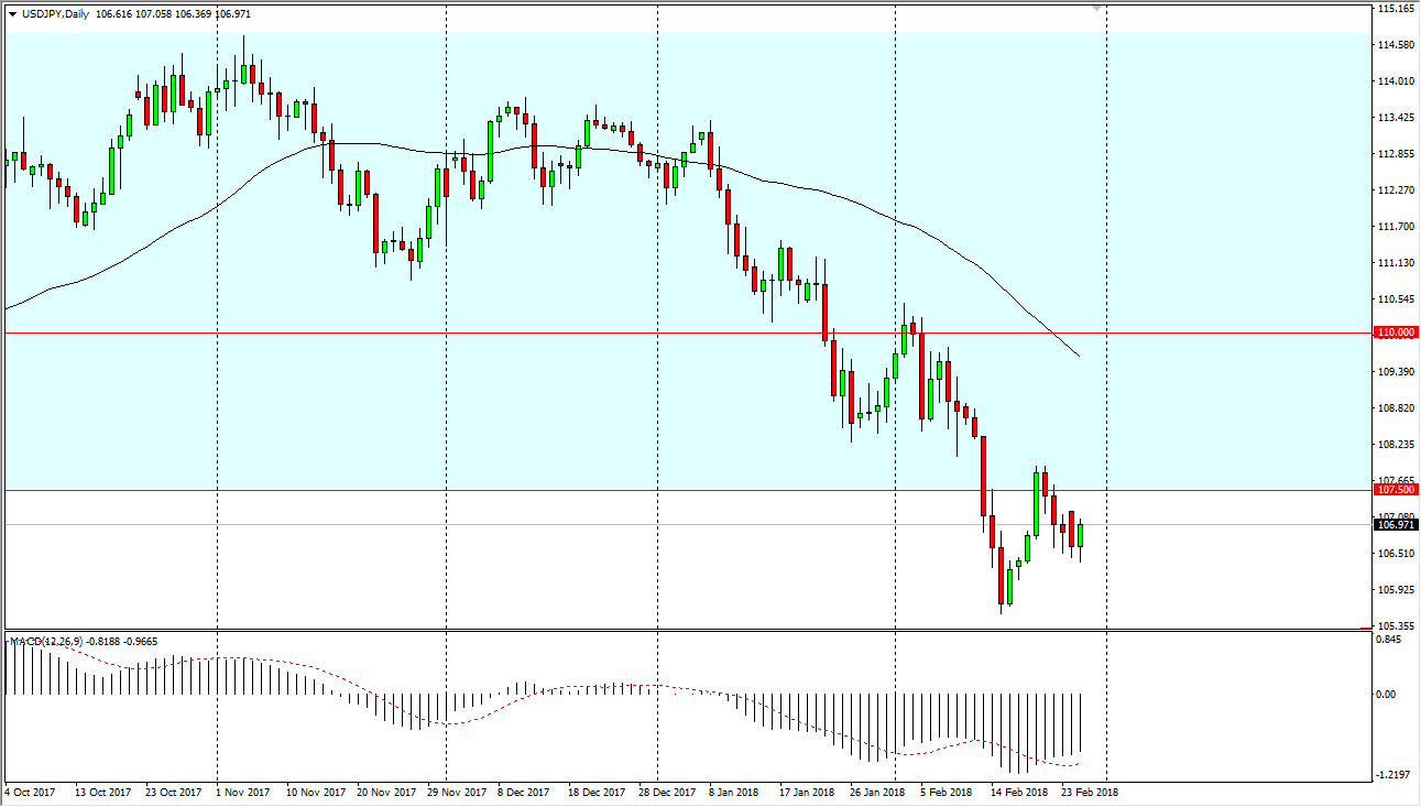 The US dollar has initially pulled back during the session on Monday but turned around to rally rather significantly and reached towards the 107 handle. At this point, I believe that there is a lot of noise in this market, and I feel that we are trying to build a bit of a base. If we can break above the 108 handle, then I think that the market will be free to go much higher. Remember, this pair tends to move with overall risk appetite, so pay attention to the stock markets and futures markets as to what they say about risk appetite overall. If risk appetite is strong, then that typically will lift this market. I believe that if we make a fresh, new low, the market will probably reach down towards the 105 handle.