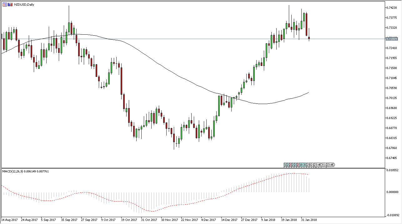 The New Zealand dollar has gapped lower, rallied a bit during the day to fill that gap, and then rolled over again. I believe that the market is ready to break down, as the New Zealand dollar is considered to be a “risk on” currency. As the US dollar rallies, it should continue to push this market lower, as we have been far too overbought for a while. We are close to the top of the overall consolidation area, which extends to the 0.75 level, but the bottom is all the way down to the 0.68 handle. It’s very likely that we could reach towards the 0.7050 level, followed by the 0.68 handle after that. If we continue to see negativity in the markets, this pair will fall rather drastically, and should have no trouble reaching .68.