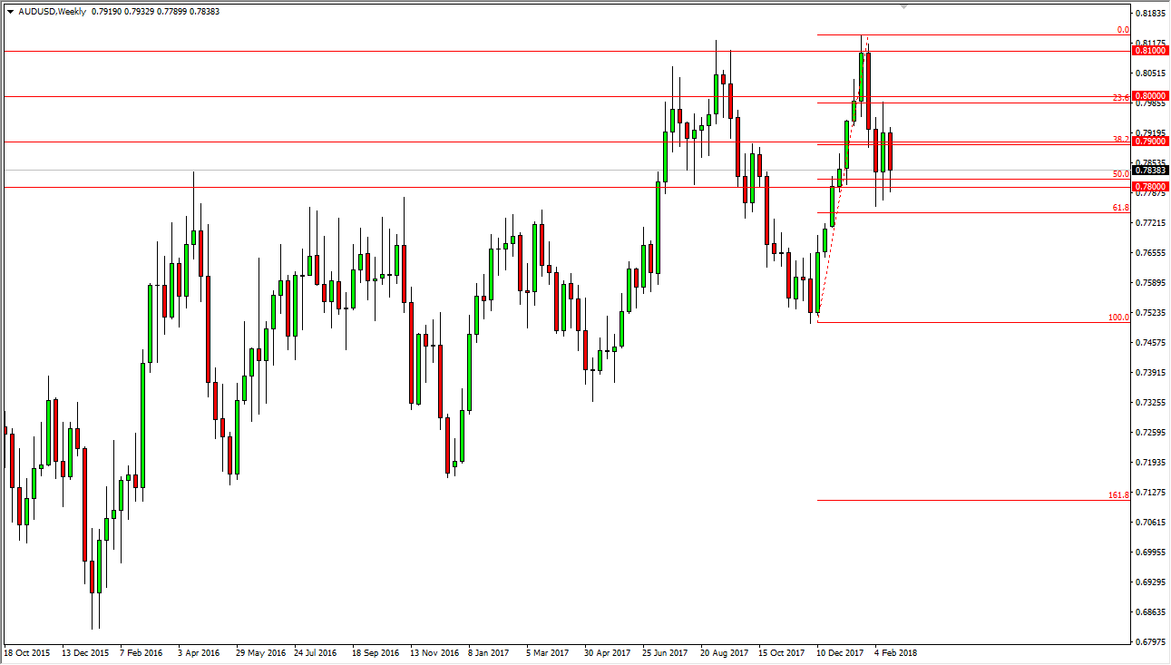 The Australian dollar has fallen during most of the week but found enough support towards the end to bounce above the 0.78 level, showing signs of life again. The market continues to favor the upside overall, and I think at this point we are seeing consolidation that could be the beginning of momentum building to the upside. I recognize that breaking out to a fresh, new high would be a very bullish sign, but I think it’s going to take a lot of work based upon historical precedents of the 0.80 region. Buying short-term dips might work for short-term trades.